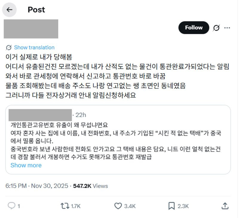 #쿠팡사태 #개인통관번호 #재발급 #정보유출 #유니패스 #온라인쇼핑 #개인정보보호