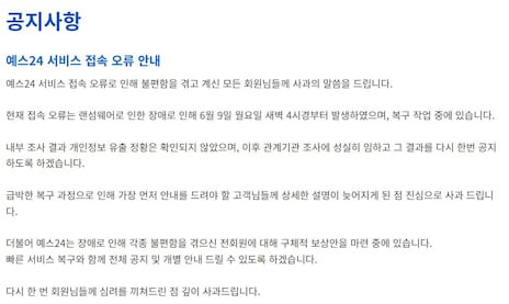 2025년 6월 9일, 예스24는 시스템 에러로 인해 서비스가 중단되었습니다. 이로 인해 많은 고객들이 도서 검색 및 구매에 어려움을 겪었습니다. 예스24 측은 초기에는 단순한 시스템 오류라고 발표했으나, 이후 보안 문제로 인한 서비스 중단이라는 사실이 밝혀졌습니다.