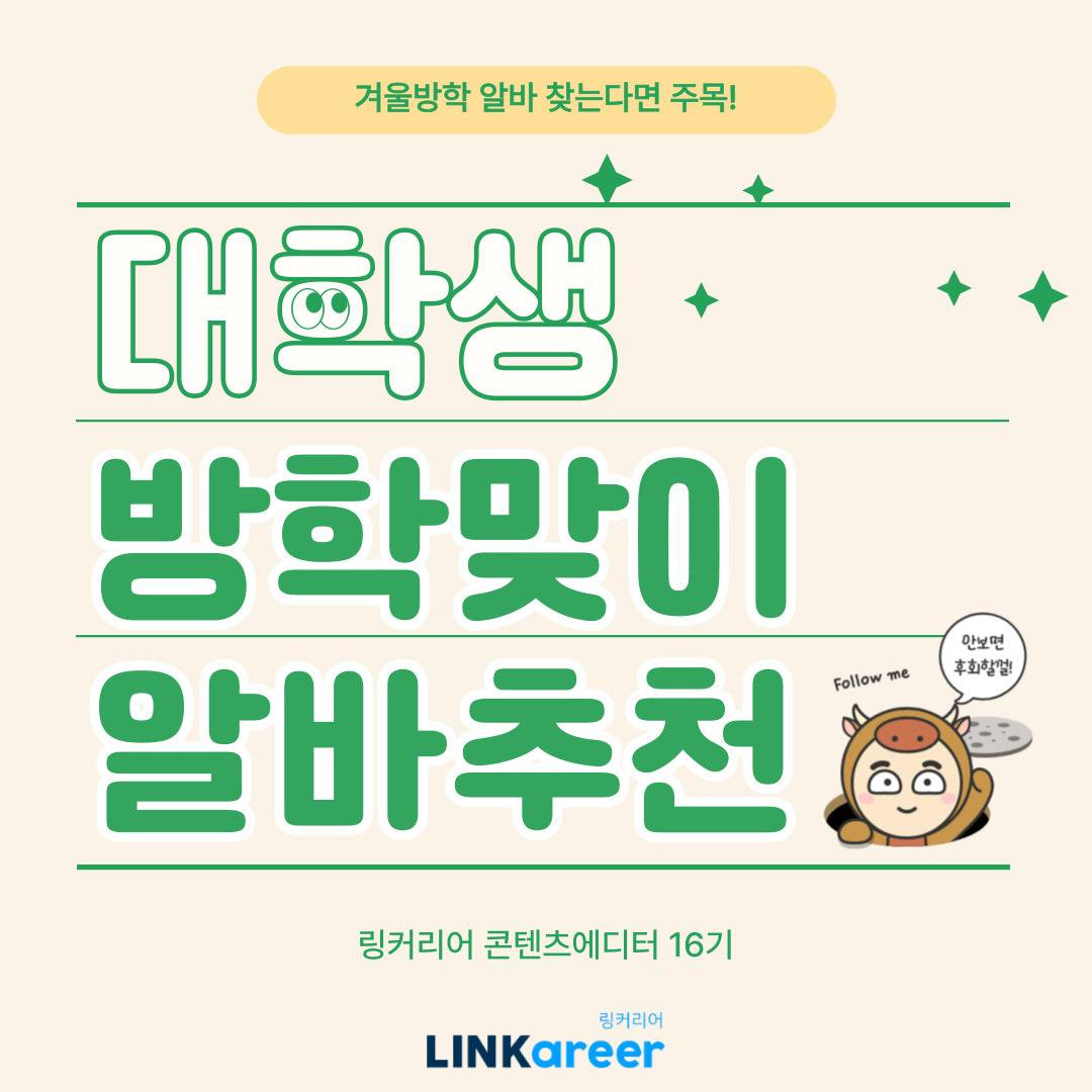#겨울방학 #아르바이트 #대학생 #알바추천 #링커리어 #알바천국 #겨울방학알바 #아르바이트순위 #대학생아르바이트
