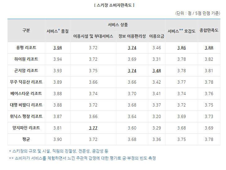 소비자 만족도는 스키장을 선택하는 데 중요한 요소입니다.