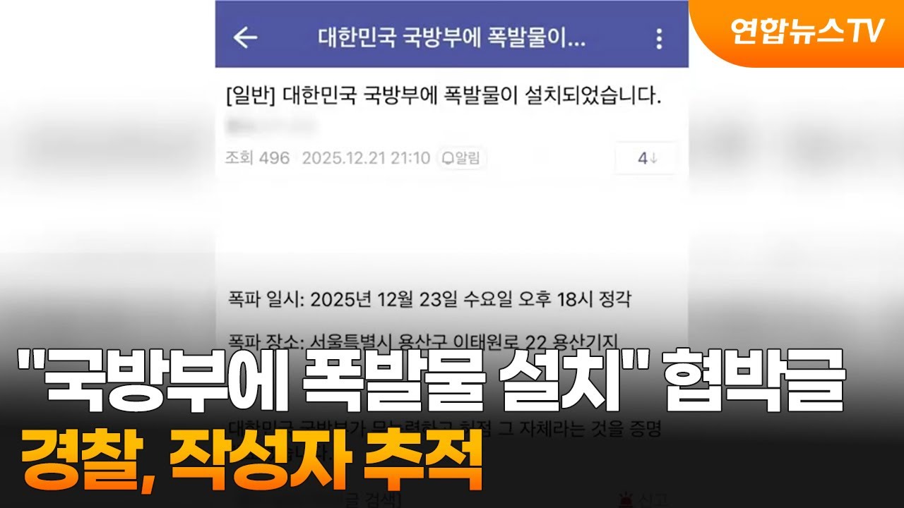 [3] 경향신문 - “국방부에 폭발물 설치” 온라인 협박 글…경찰 추적 중 (https://www.khan.co.kr/article/202512220754001/?utm_source=khan_rss&utm_medium=rss&utm_campaign=society_news)