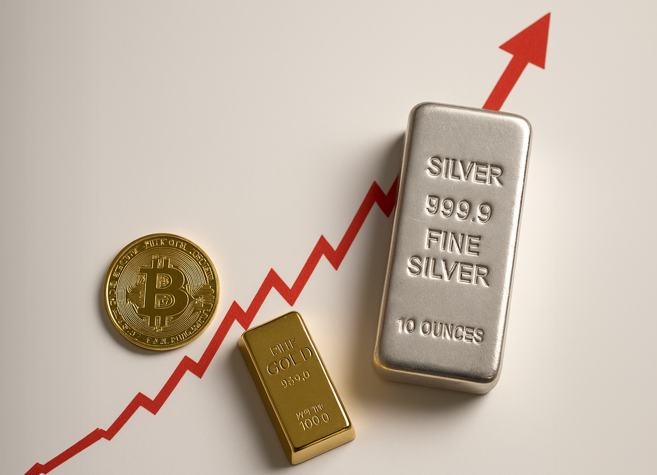 에서는 은과 금, 그리고 비트코인을 비교한 이미지가 있습니다.