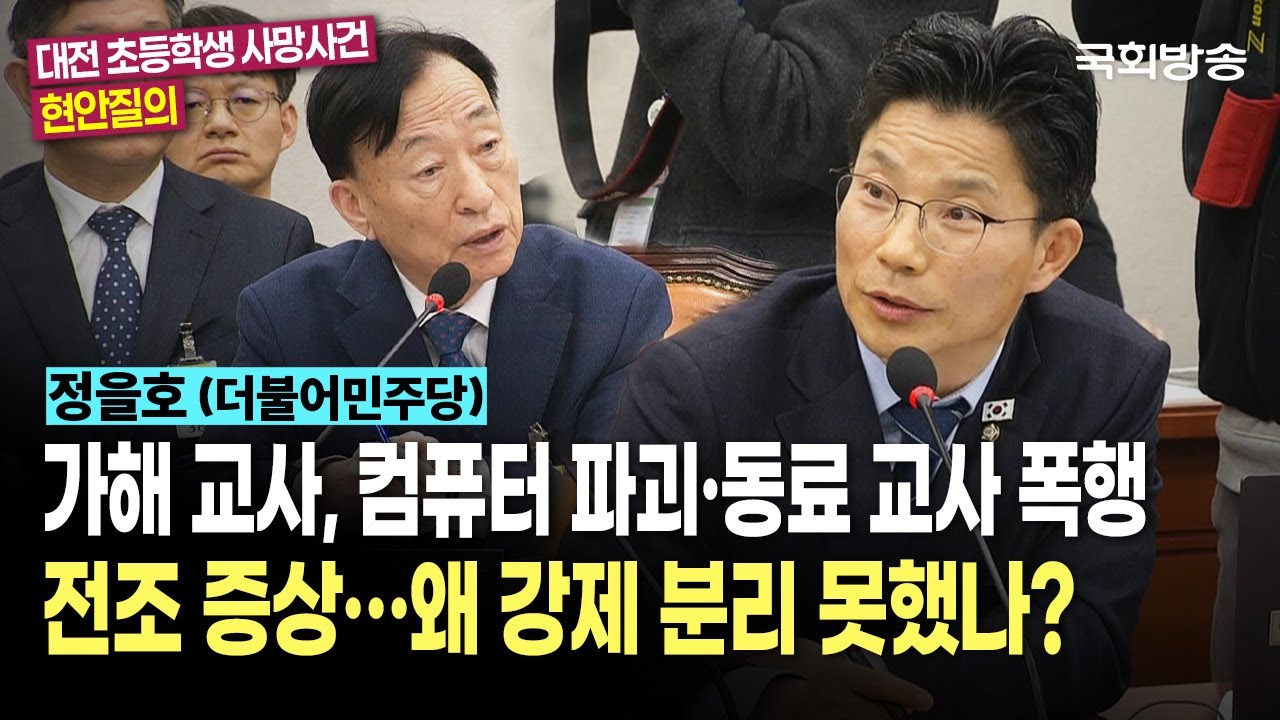 [2] YouTube · NATV 국회방송 - 동료 교사 폭행! 전조 증상…왜 강제 분리 못했나?" 정을호 ... (https://www.youtube.com/watch?v=-w0iofnDRnA)