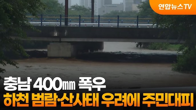 [4] YouTube · YTN - [에디터픽] '산사태·하천 범람' 충남 전역 침수 위기...주민 긴급 ... (https://www.youtube.com/watch?v=5aAQKDDuBDk)