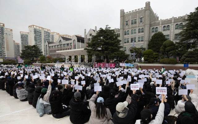에서 보이는 것처럼, 많은 학생들이 모여 시위를 벌이며, 빈 종이를 들고 있는 모습은 그들의 목소리가 무시당하고 있다는 상징적인 표현입니다. 이들은 학교 측에 대화와 협상을 요구하며, 자신들의 요구가 수용될 때까지 시위를 계속할 것이라고 다짐했습니다.