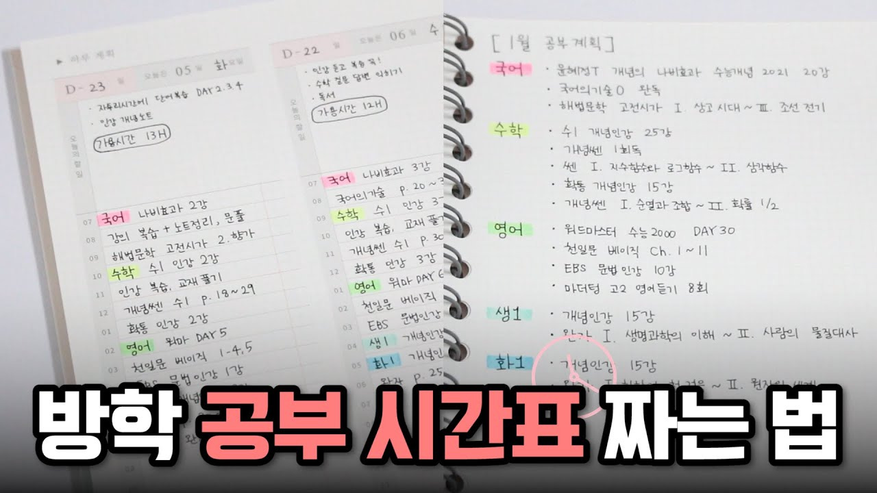 [3] YouTube - 겨울방학 공부 시간표 짜는 법 & 과목 시간 분배하는 법! ... (https://www.youtube.com/watch?v=YP6itKOn3Ns)
