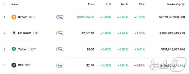 [1] 연합뉴스 - 비트코인, 사상 최고가 10만9천888달러…11만달러 돌파 ... (https://www.yna.co.kr/view/AKR20250522000352091)