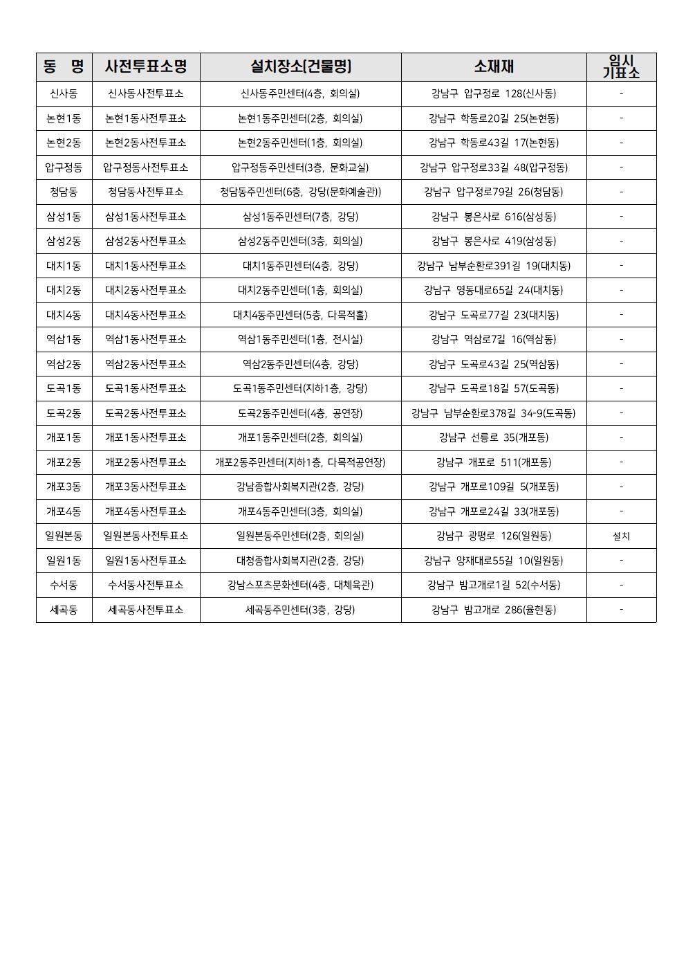 - 강남구청 사전투표 및 선거일 투표절차 안내