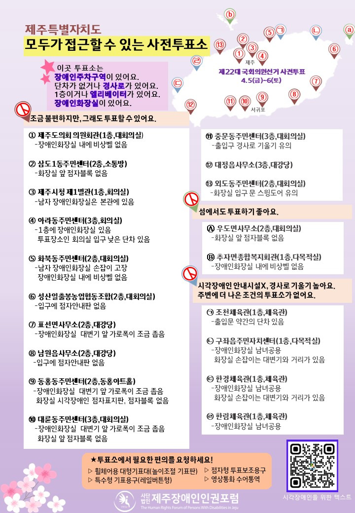 모든 유권자가 편리하게 투표할 수 있도록 접근성 있는 투표소도 마련되어 있습니다. 특히 장애인이나 노약자 분들을 위해 엘리베이터나 경사로가 설치된 투표소가 운영되고 있습니다. 제주도에서는 이러한 접근성 정보를 담은 포스터를 배포하여, 모든 유권자가 불편함 없이 투표할 수 있도록 하고 있습니다.