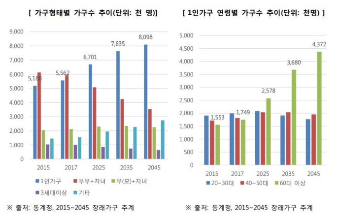 또한, 연령대별로 살펴보면 20대와 60대 이상의 1인 가구가 특히 많이 증가하고 있습니다.