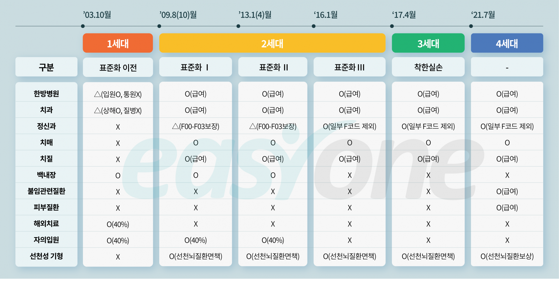 세대별 보장내용 비교