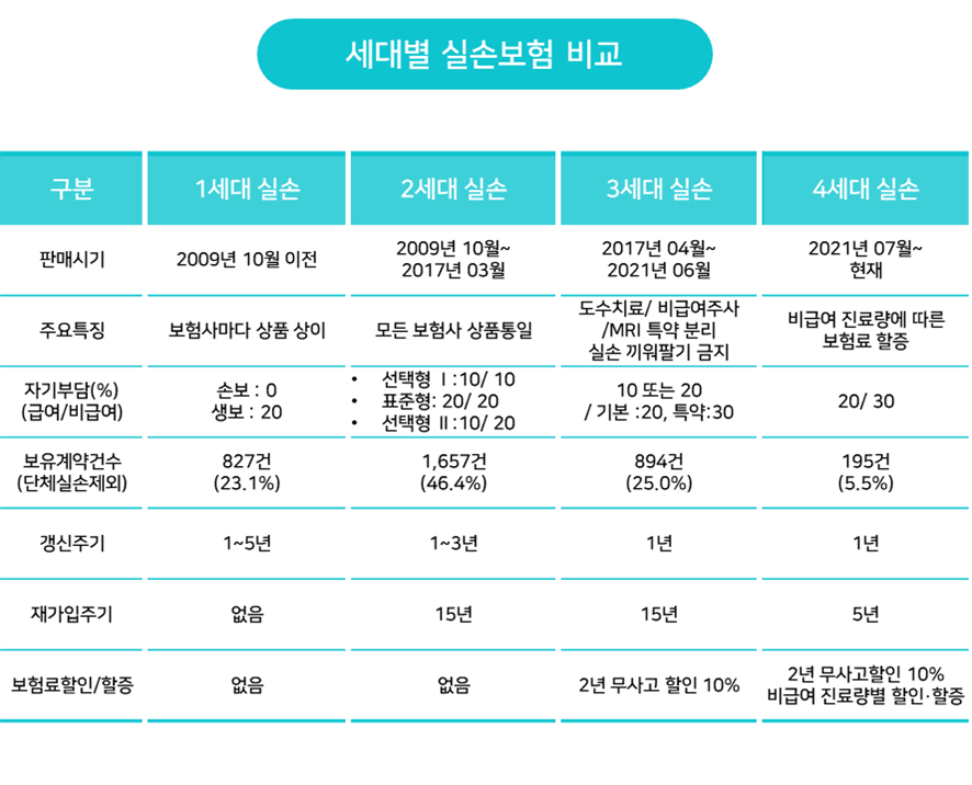 - 실손보험 세대별 차이점 요약