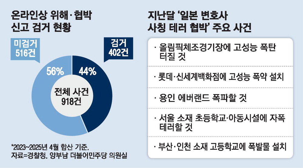 통계에 따르면, 최근 한 달간의 온라인 위협 및 괴롭힘 신고 중 56%가 확인되지 않은 사건으로 나타났으며, 이는 공공 안전에 대한 우려를 더욱 부각시키고 있습니다.