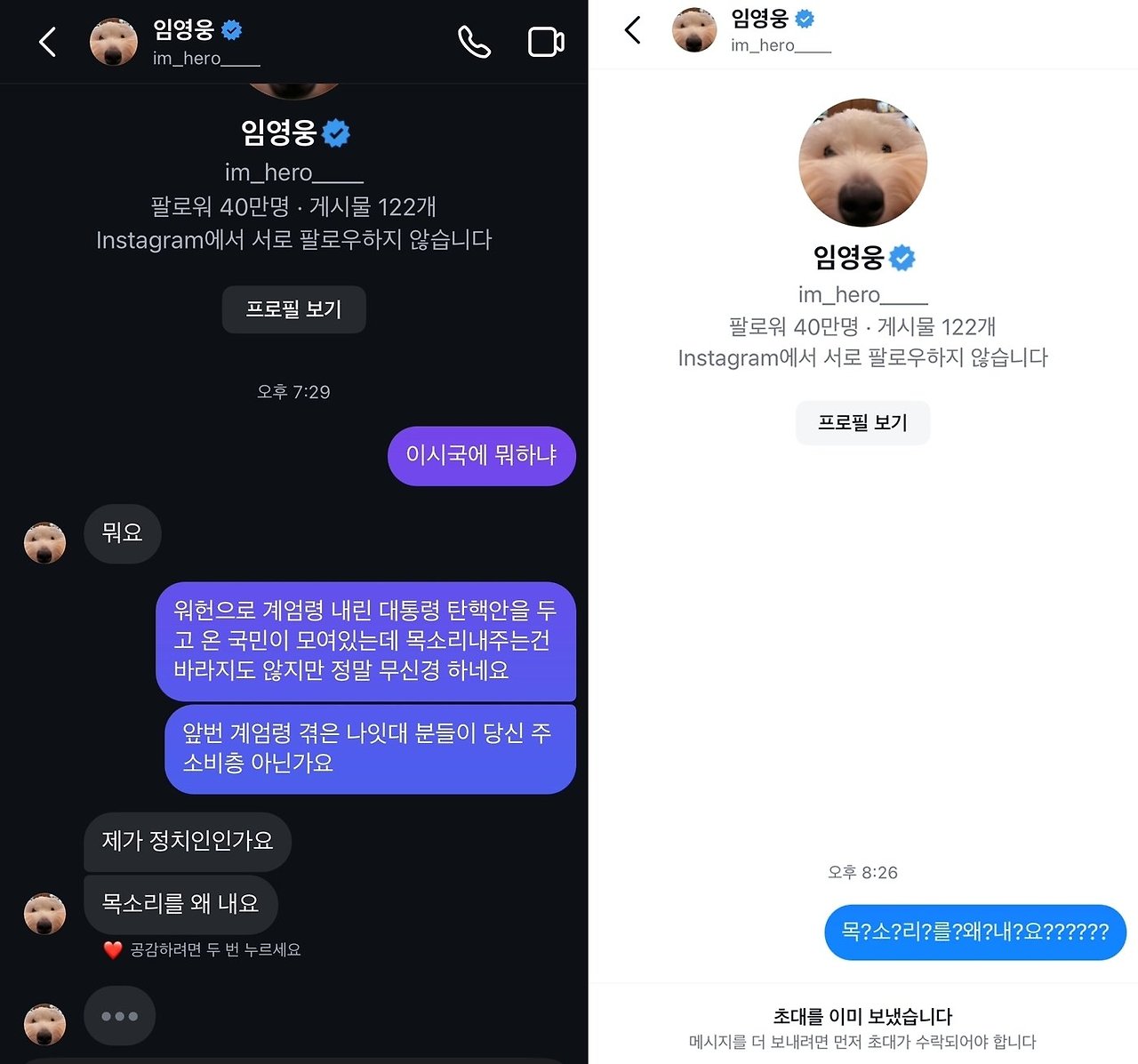 이 논란은 한 누리꾼이 임영웅과 나눈 다이렉트 메시지를 공개하면서 시작되었습니다. 해당 메시지에서는 "이 시국에 뭐하냐?"라는 질문이 포함되어 있었고, 이는 임영웅의 정치적 발언에 대한 비판으로 해석되었습니다. 이후, 임영웅은 자신의 SNS에 사과의 메시지를 올리며 "심려 끼쳐 죄송하다"는 입장을 밝혔습니다.