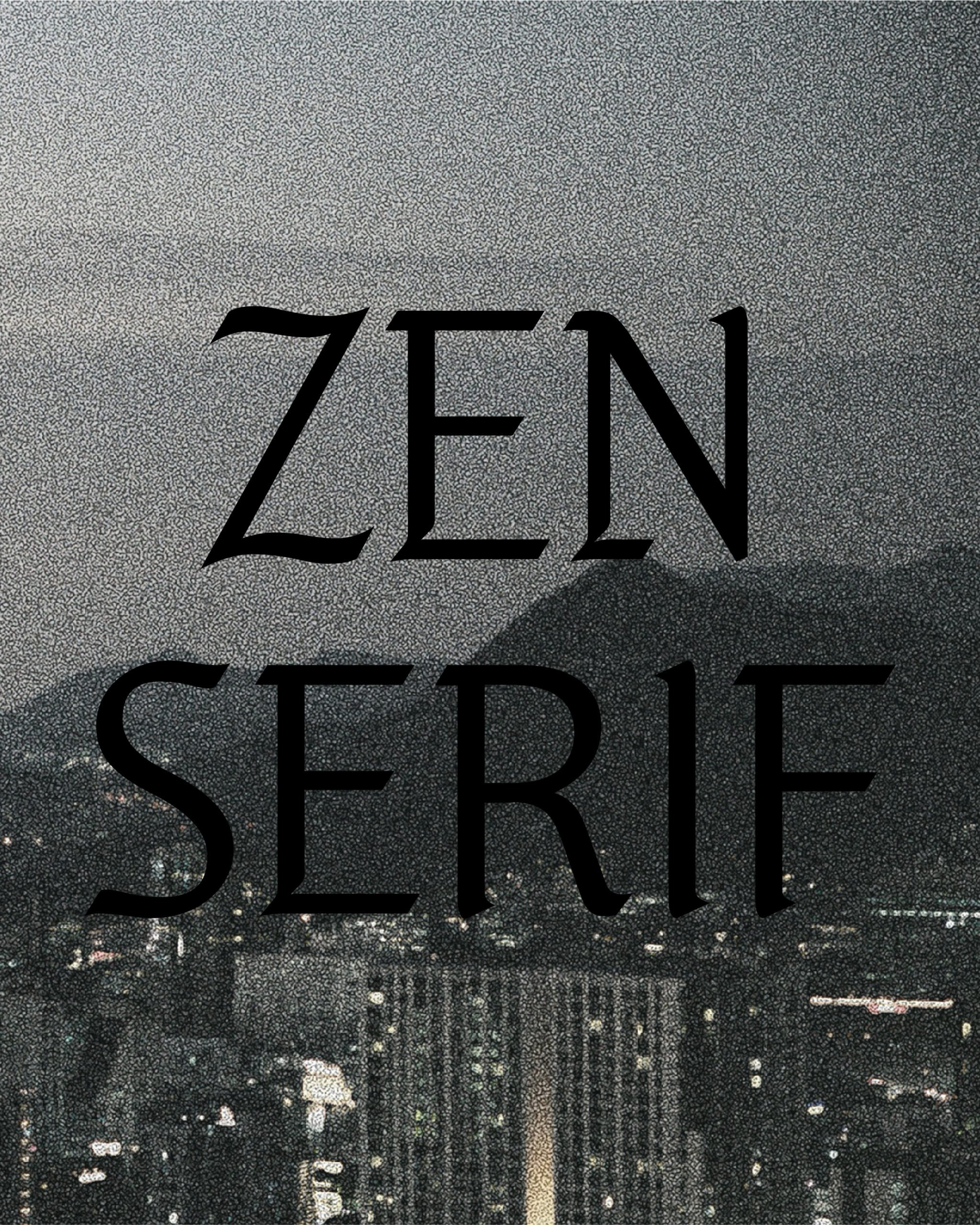 젠 세리프는 현대적인 감각을 지닌 서체로, 블랙레터의 전통적인 요소와 한글의 아름다움을 결합한 디자인입니다. 이 글꼴은 세리프가 강조된 형태로, 글자의 끝부분에 장식적인 요소가 추가되어 있습니다. 이러한 디자인은 글꼴에 독특한 개성을 부여하며, 다양한 디자인 작업에 활용될 수 있습니다.