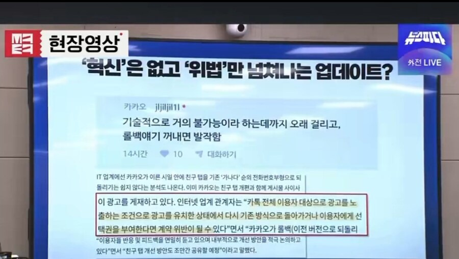 [3] 중앙일보 - 카카오 부사장 "카톡 이전으로 못 돌린다…기술적으로 불가능" (https://www.joongang.co.kr/article/25373734)