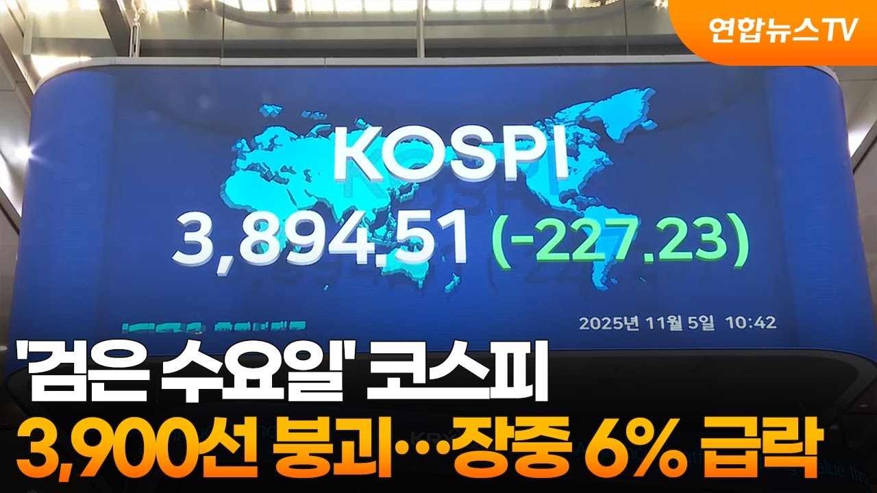 [2] 뉴스1 - '검은 수요일' 코스피, 낙폭 키워 6%대 급락…3860선까지 ... (https://www.news1.kr/finance/general-stock/5965637)