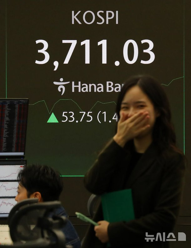 이 이미지는 코스피 지수가 3,711.03에 도달한 순간을 포착한 것으로, 시장의 활기를 잘 보여줍니다.
