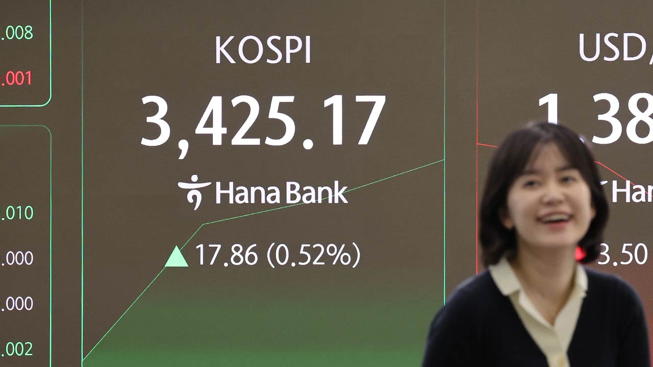 이 이미지는 코스피 지수가 3,425.17에 도달한 순간을 보여주며, 시장의 긍정적인 분위기를 잘 전달합니다.