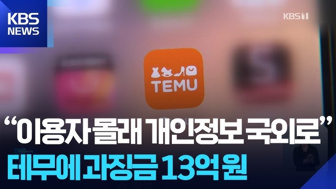[2] YouTube · KBS News - 정부, 테무에 13억 과징금…“이용자 몰래 개인정보 국외로 ... (https://www.youtube.com/watch?v=iYz0Qap3E3c)