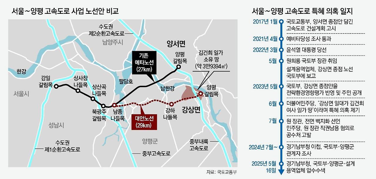 [2] 조선일보 - 김건희 특검, '양평고속道 특혜 의혹' 양평군청 압수수색 (https://www.chosun.com/national/court_law/2025/08/22/N4UPZBFFUBCJPH72B36MR4VGNI/)