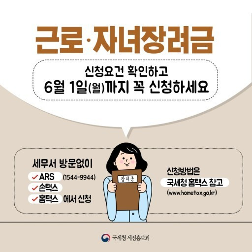 태그: #근로장려금 #자녀장려금 #2024년도 #신청방법 #가구당지원금 #국세청 #경제적지원