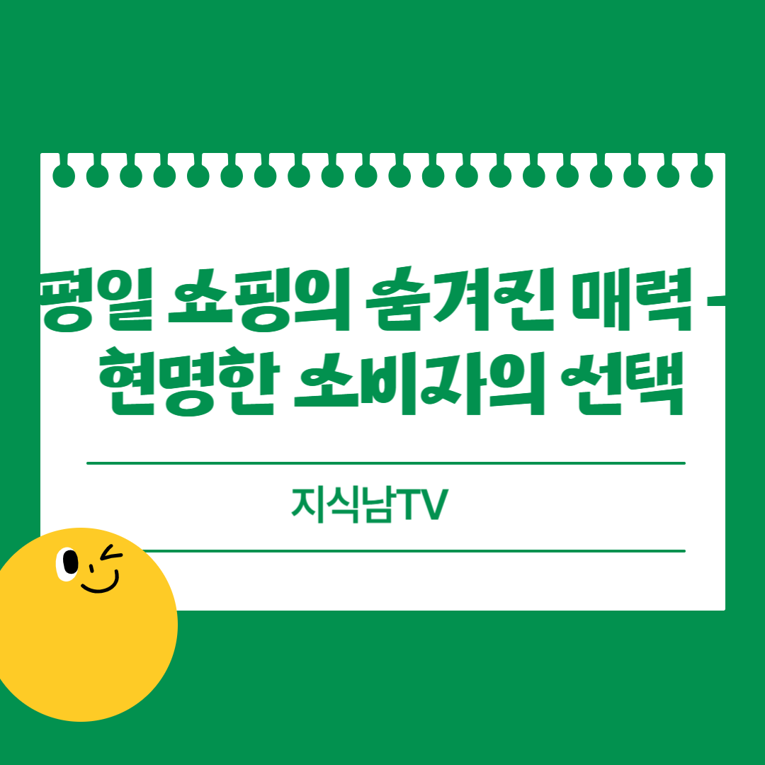 쇼핑은 단순한 구매 행위가 아닌, 나를 위한 특별한 시간이 되어야 합니다. 평일 쇼핑으로 더 현명하고 즐거운 소비 생활을 시작해보세요.