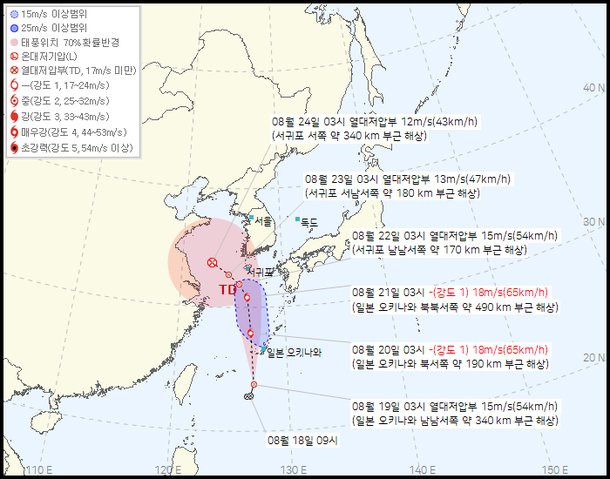 [4] 연합뉴스TV - 한반도 남쪽 ′태풍 씨앗′ 발생…한일 예측 엇갈려 (https://m.yonhapnewstv.co.kr/news/AKR20250818125314961)
