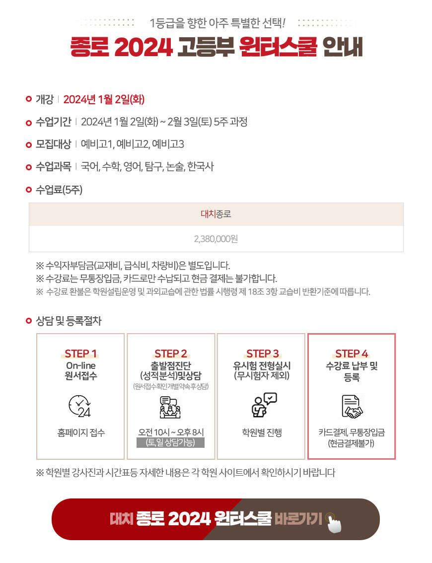 [2] Daum - 방학 아닌데 교실 비었다…1등급 학생 몰린 400만원 '윈터스쿨' (https://v.daum.net/v/20241222090046594)