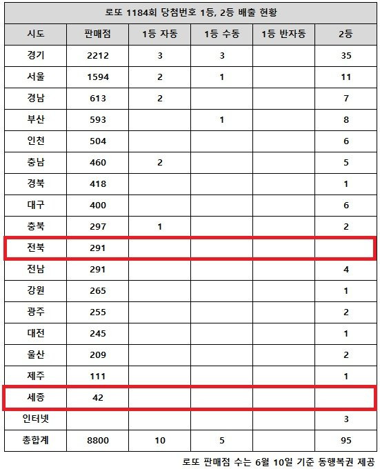 특히 전북 지역에서는 291개 의 판매점에서 1등 당첨자가 나왔고, 세종 지역에서도 42개 의 판매점에서 1등 당첨자가 발생했습니다. 이러한 지역별 판매 현황은 로또의 인기와 관련이 깊습니다.