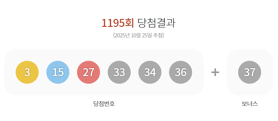 로또 1195회 당첨번호가 발표되었습니다! 🎉 이번 회차의 당첨번호는 3, 15, 27, 33, 34, 36이며, 보너스 번호는 37입니다. 이번 포스팅에서는 당첨번호와 함께 당첨금, 당첨자 수, 지역별 판매 현황 등을 자세히 알아보겠습니다.