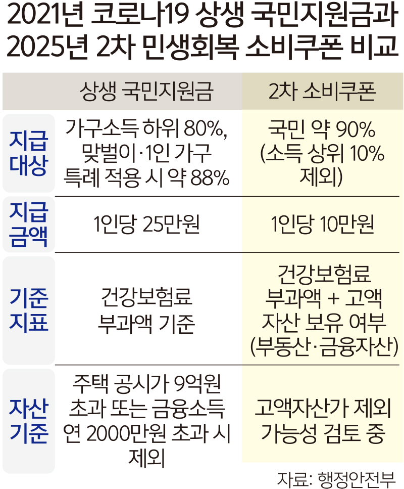 [4] 뉴시스 - '소득 상위 10% 뺀' 소비쿠폰 2차 기준, 오늘 발표…1차 신청 ... (https://www.newsis.com/view/NISX20250911_0003325509)