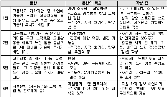 - 학업 및 경력 : 고등학교에서의 학업 성취와 관련된 경험