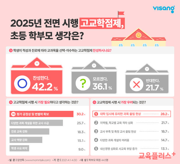부모님들의 의견은 다양합니다. 최근 조사에 따르면, 42.2%의 부모님이 고교학점제를 지지하고 있으며, 36.1%는 불확실하다고 응답했습니다.