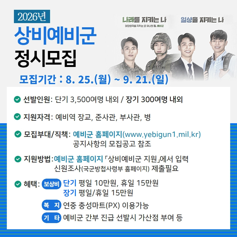 #상비예비군 #정기모집 #지원대상 #자격요건 #수당 #훈련 #국가안전 #예비군 #2026년도모집