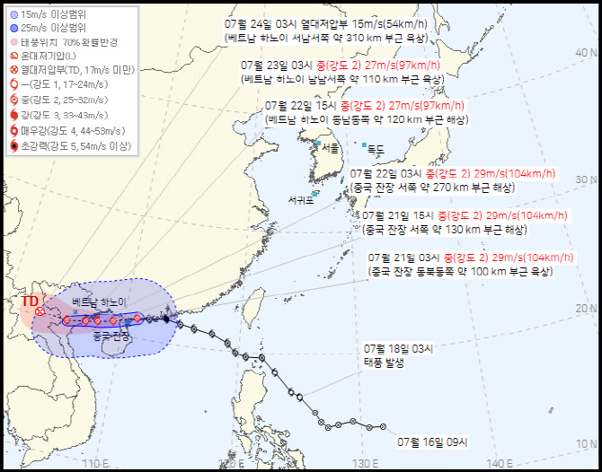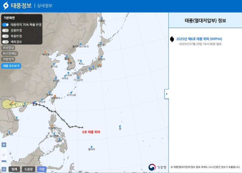 [2] bntnews.co.kr - 2025 태풍 6호 위파-7호 태풍 프란시스코 예상경로 - bnt뉴스 (https://www.bntnews.co.kr/article/view/bnt202507180140)